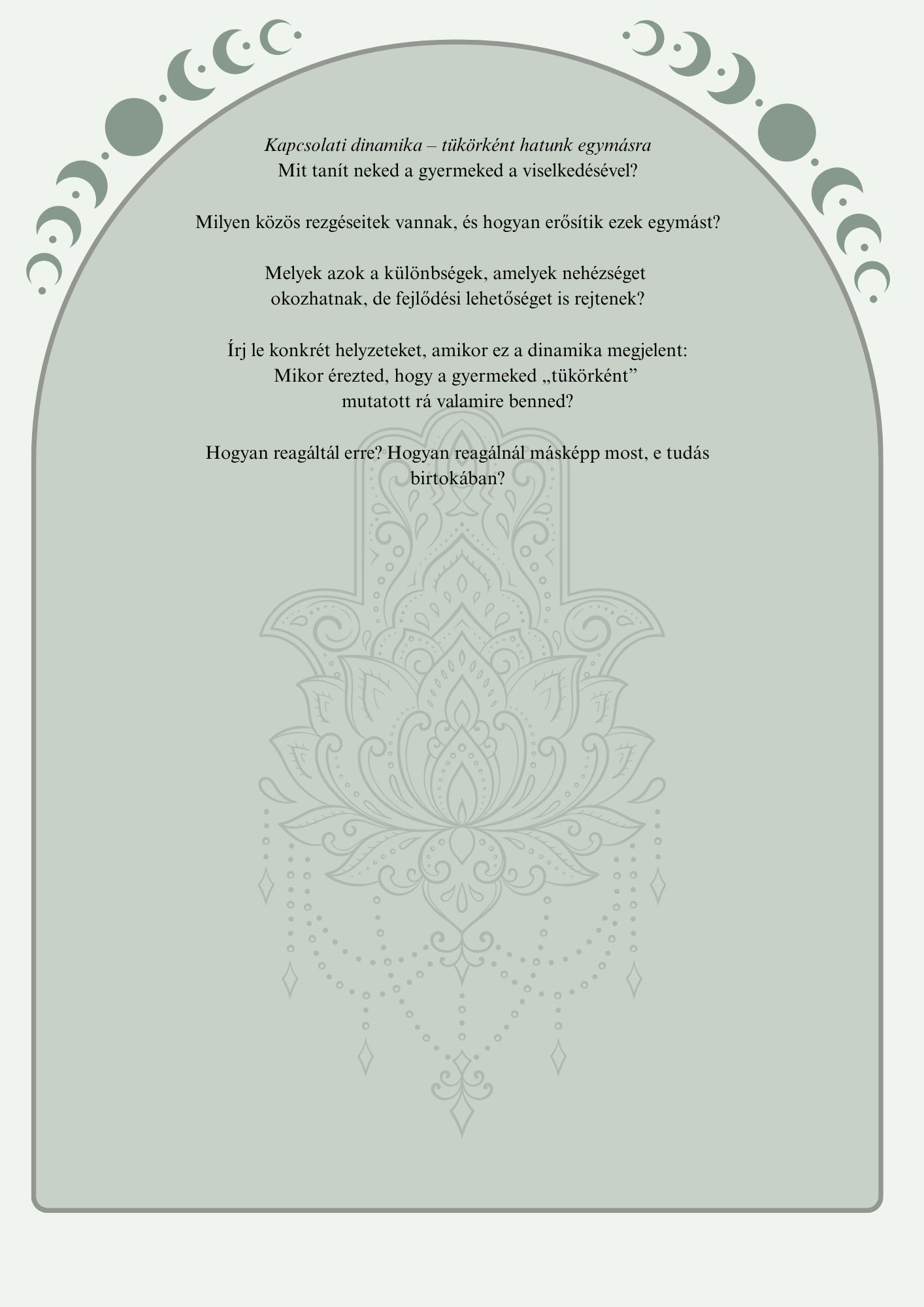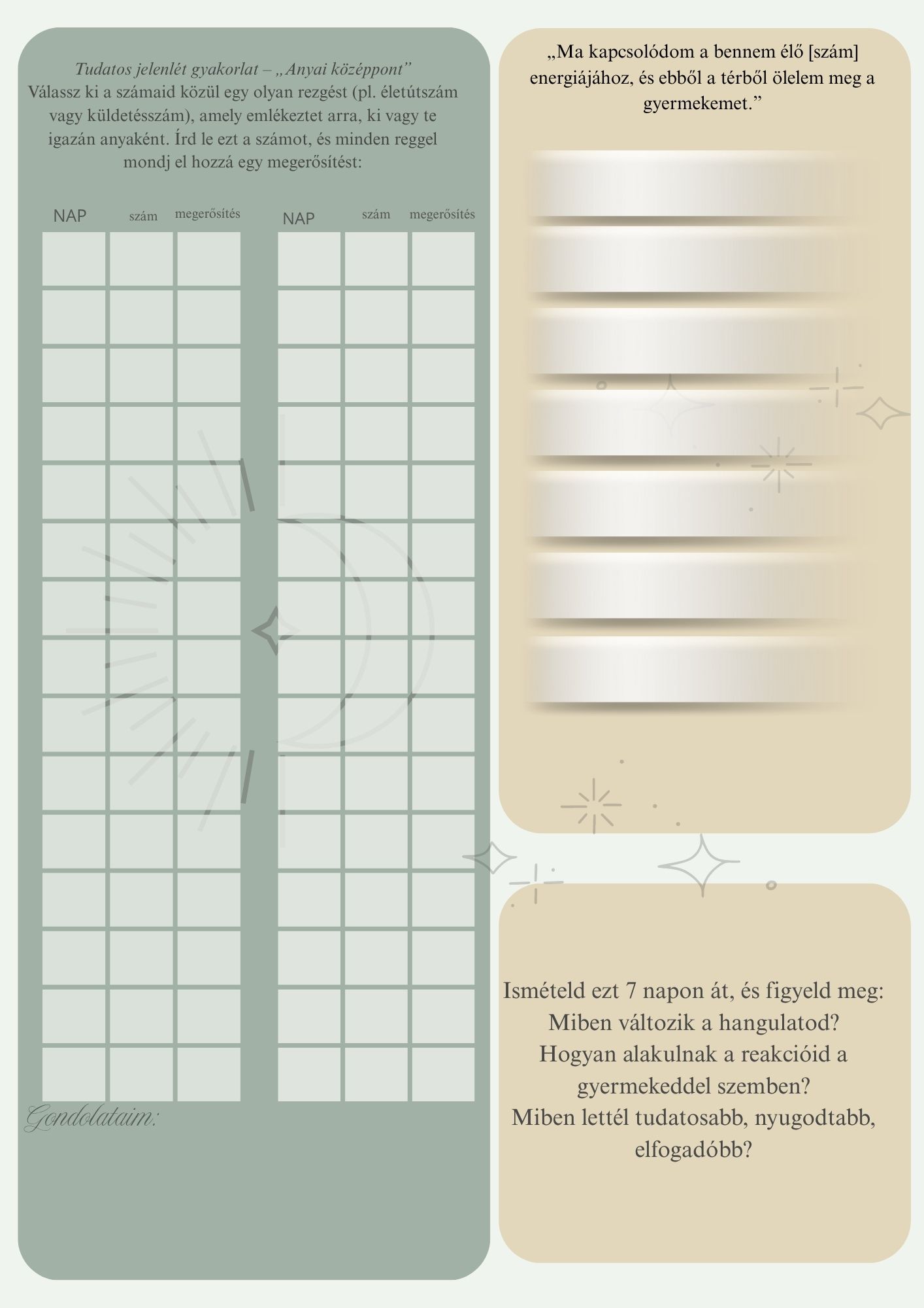Minden kérdés, minden feladat és minden oldal abban támogat, hogy közelebb kerülj önmagadhoz – és ezáltal közelebb a gyermekedhez is.